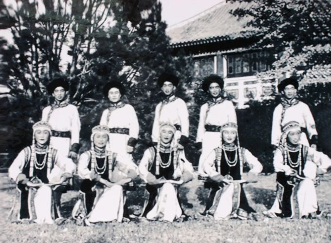 大学时代,王大中(后排左一)和清华舞蹈队队友合影