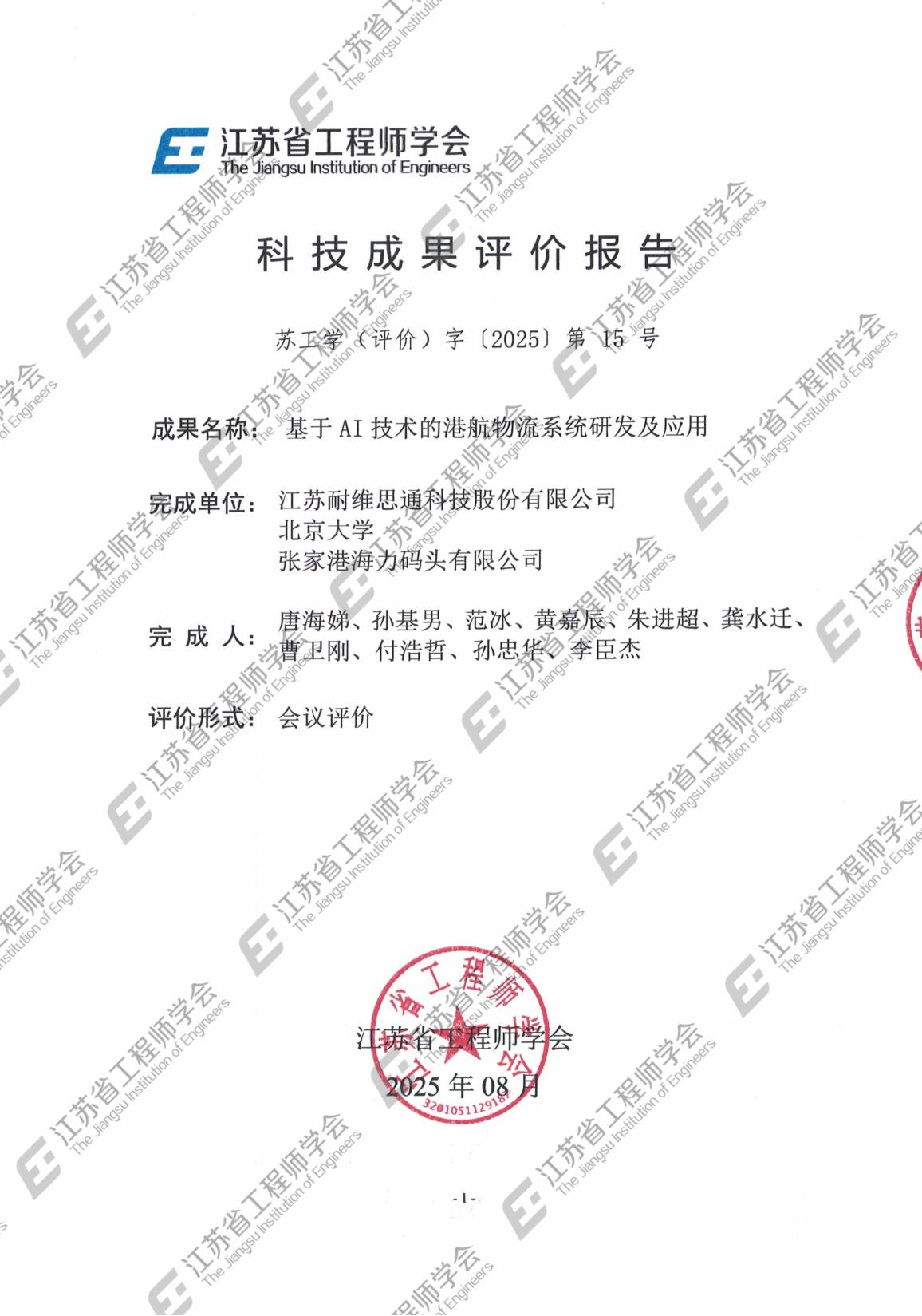 苏工学(评价)字〔2025〕第15号 基于AI技术的港航物流系统研发及应用