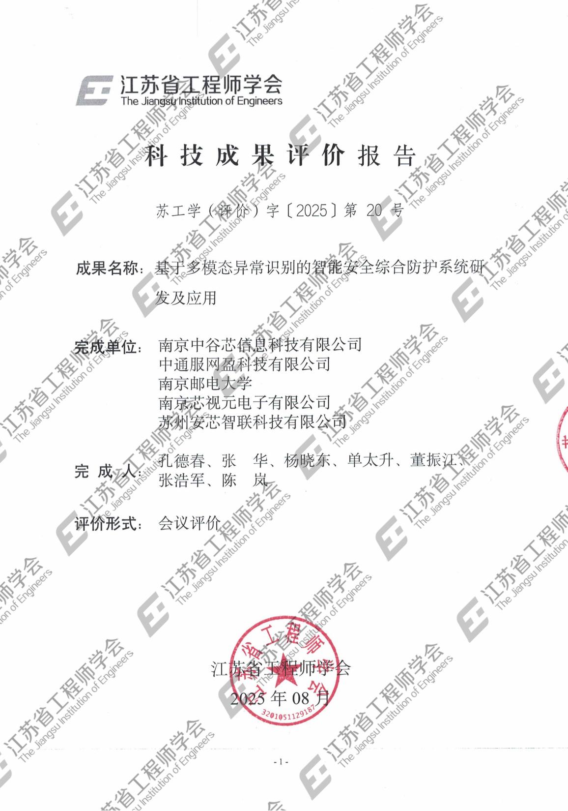 苏工学(评价)字〔2025〕第20号 基于多模态异常识别的智能安全综合防护系统研发及应用