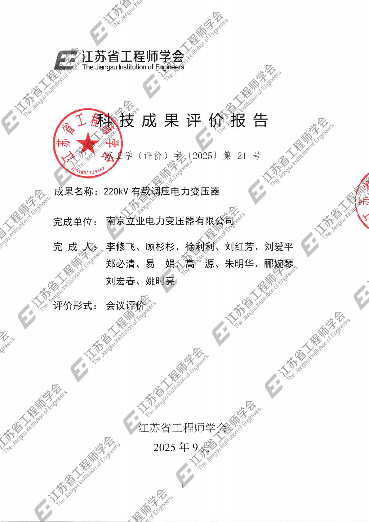 苏工学(评价)字〔2025〕第21号 220KV有载调压电力变压器
