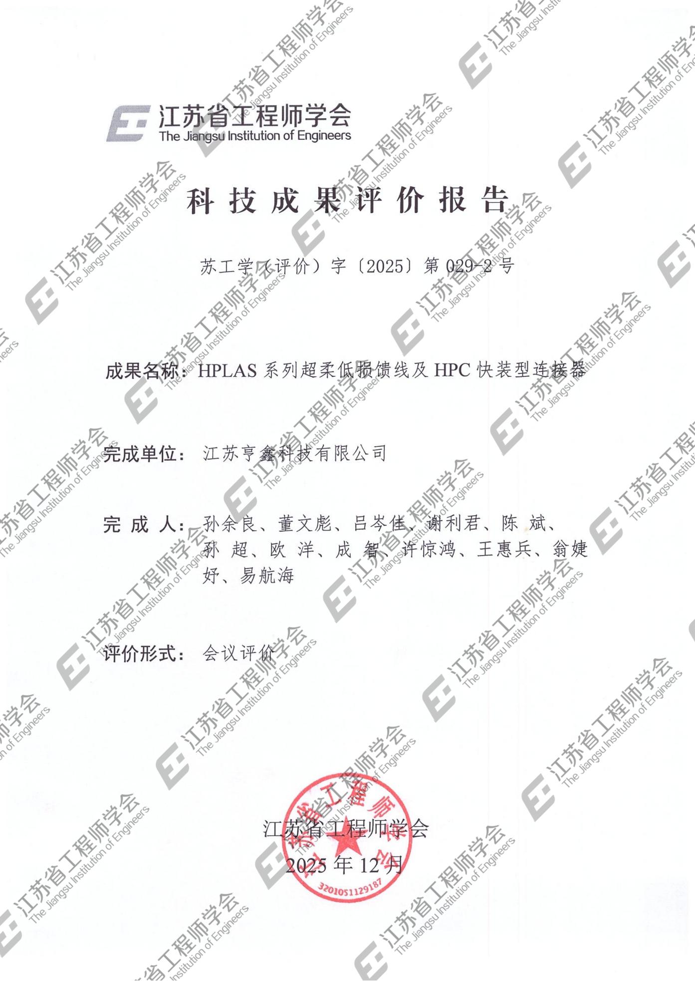 苏工学(评价)字〔2025〕第29-2号 HPLAS系列超柔低损馈线及HPC快装型连接器
